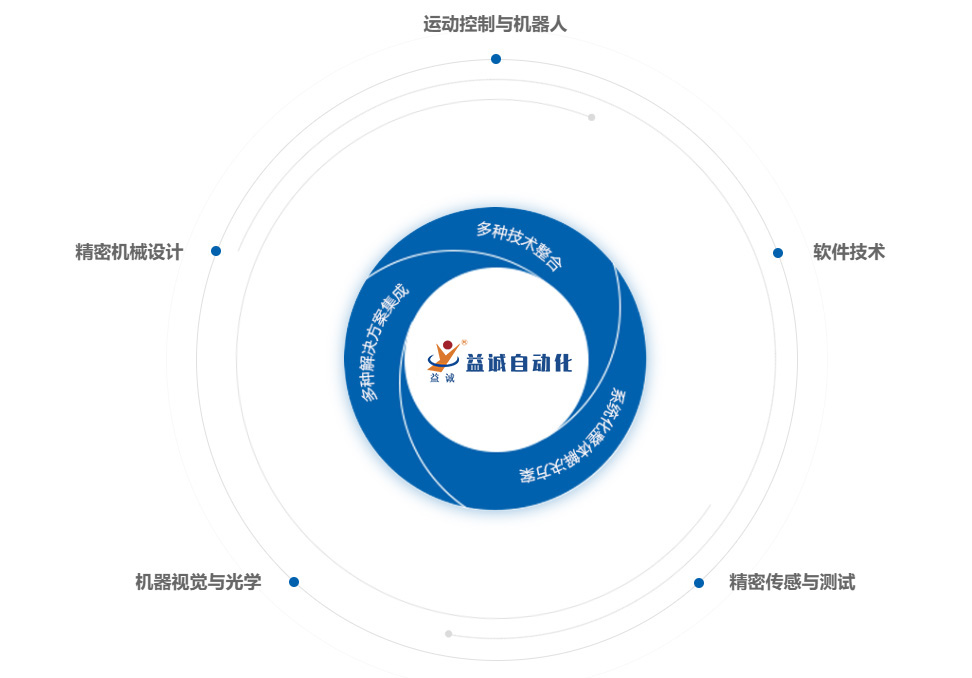 益誠自動化成立于2007年,已通過ISO9001:2015質(zhì)量管理體系認(rèn)證,是一家高新技術(shù)企業(yè),東莞市工程技術(shù)研究中心,設(shè)有一個博士工作站??偣疚挥趶V東省東莞市,在沈陽、蘇州、印度尼西亞設(shè)有分公司,在香港特別行政區(qū)和德國設(shè)有辦事處。并與2021年在浙江、韶關(guān)自建智能制造工業(yè)科技園。益誠自成立以來專業(yè)從事非標(biāo)自動化生產(chǎn)設(shè)備、視覺定位與檢測、工業(yè)多軸機器人的研發(fā)、制造與服務(wù),以及為生產(chǎn)企業(yè)提供智能制造整體解決方案。益誠擁有一支由100余名專業(yè)工程開發(fā)人員組成的研發(fā)團(tuán)隊。在汽車配件、電子電器開關(guān)插座、精密微型馬達(dá)、散熱風(fēng)扇、機械手等生產(chǎn)領(lǐng)域,為各生產(chǎn)企業(yè)提供多元化的自動化解決方案。為使益誠的研發(fā)能力能得到持續(xù)提升,為市場提供更優(yōu)質(zhì)的服務(wù),益誠與國內(nèi)多家高等院校建立了”產(chǎn)、學(xué)、研“合作關(guān)系,并與德國著名的自動化設(shè)備制造商”SUSO Automation“結(jié)成戰(zhàn)略合作伙伴。